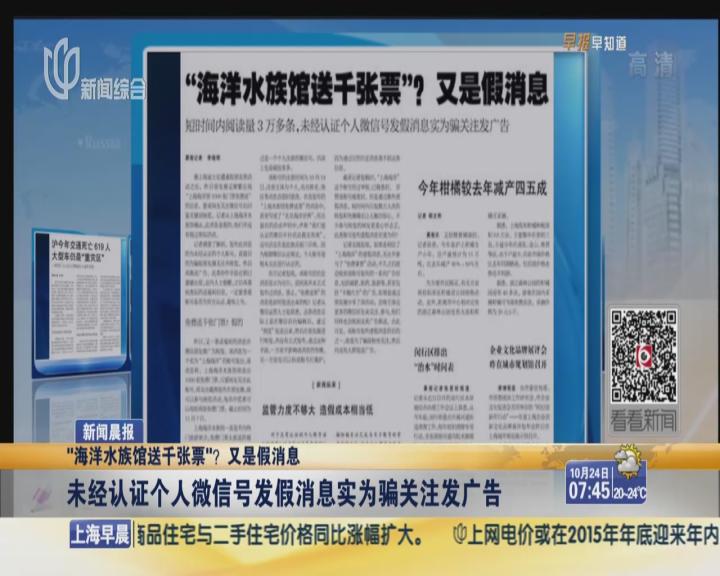 "海洋水族馆送千张票"是假消息 微信号为骗关注发广告