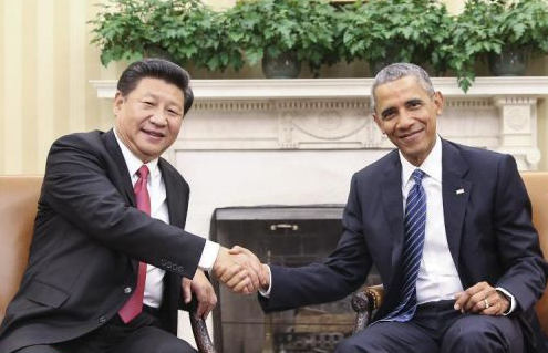 图为:2015年9月25日,中国国家主席习近平在华盛顿同美国总统奥巴马举行会谈。