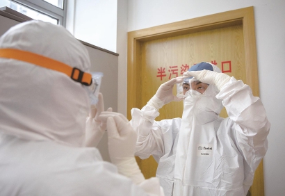 发热门诊医护人员穿戴防护服、护目镜 本报记者 周馨 摄