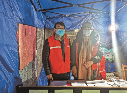 曾宪斌夫妻俩解除隔离后,在小区做志愿者 本报记者 张龙 摄