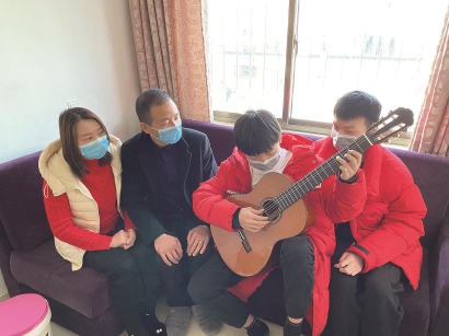 昨天,在汪保柱家中,一家四口戴着口罩弹琴唱歌其乐融融,回想起一个月来的经历,汪保柱感慨有些不太真实。