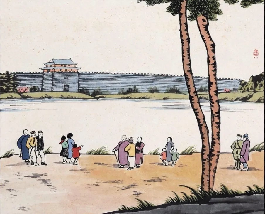 他的画中,有衔泥归来的春燕,也有枝丫拂面的杨柳。有三三两两在堤岸看花的路人,也有独卧草庐下沐春风的闲客。百种场景,皆逃不出一份天真的勃勃生机。