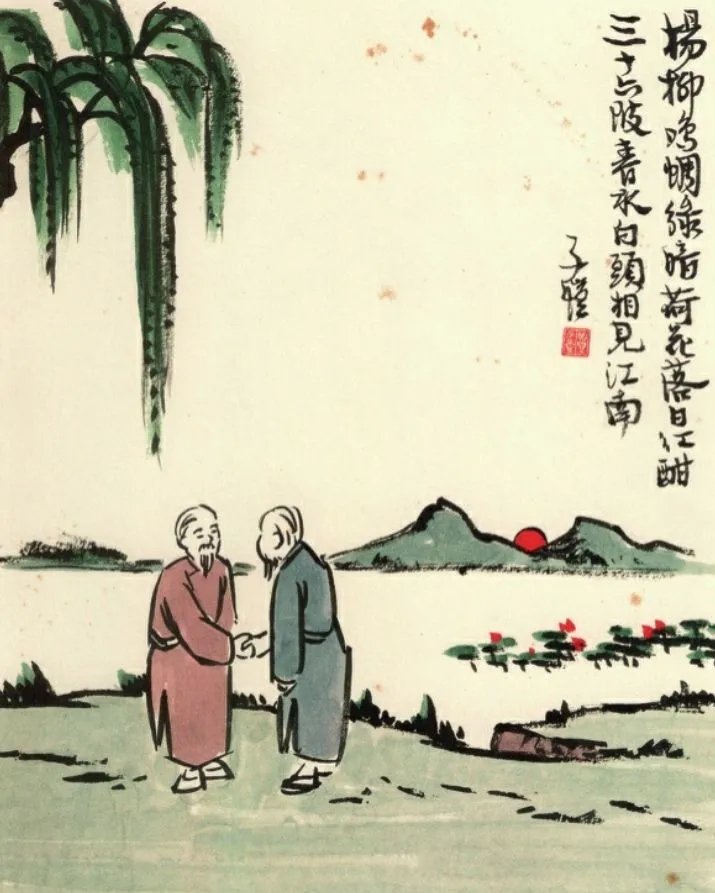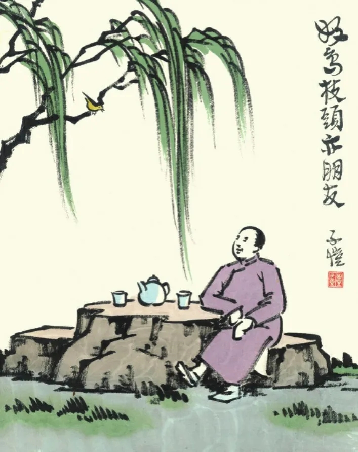 丰子恺的画中,最常见的是杨柳。