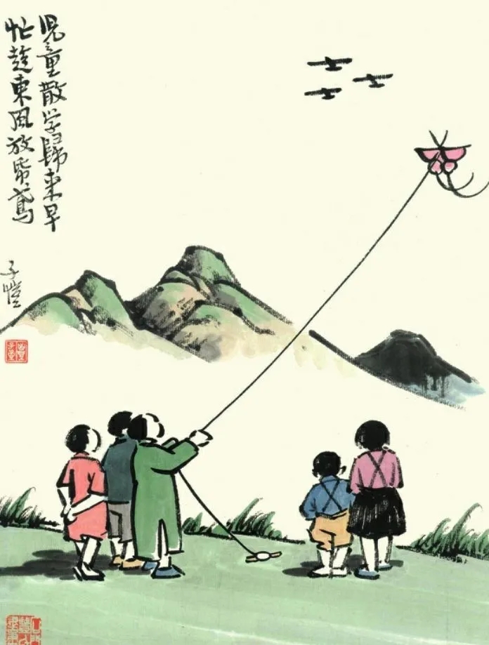 丰子恺还爱画春日里的小朋友,大概因为活泼的小朋友,和生机的春日,是茫茫宇宙中同一类令人欣喜的存在吧。