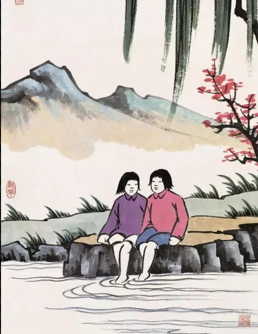因此在他的春日画中,总有一抹绿柳在。有时柳作景,更有人间烟火气。有时人立柳梢头,无论是闲谈还是静坐,都多了一份温吞和谦逊。