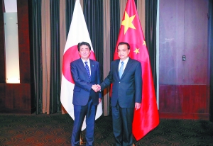 国务院总理李克强当地时间11月1日晚在首尔下榻饭店应约会见出席第六次中日韩领导人会议的日本首相安倍晋三。