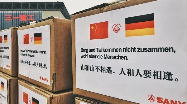 3月13日,一辆专用货车从长沙产业园出发。车上所装的,是一家中国企业向德国捐赠的口罩。包装箱上印有一句德国谚语:“山和山不相遇,人和人要相逢”。