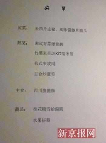 “习马会”晚宴菜单。新京报记者颜颖颛摄