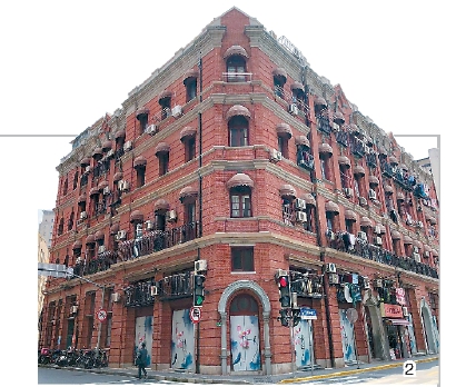 我获得了两份关于交通处总处旧址建筑的文字记载材料。一份是相关部门的党史资料,资料中写道:“该建筑坐东朝西,砖混结构五层(包括隔楼在内),局部六层,以扁圆券、平券、半圆券节奏排列,构成连续券柱式拱廊,横竖向线条交错。中部檐断开,以三角形山花形成构图中心,主入口拱券门斗突出,左右饰壁柱。底层仿石墙面,二层以上红砖墙面,檐口及券心石著白色。”一份是2017年10月由中国地图出版社和中华地图学社联合出版、国家文物局主编的《中国文物地图集(上海分册)》,在“中共江苏省委交通处总处旧址”条目下写道:“旧址坐北朝南,砖木结构六层,主面以扁圆券、平券、半圆券节奏排列,构成连续券柱式拱廊,横竖向线条交错。中部檐断开,以三角形山花形成构图中心。主入口拱券门廊突出,左右立壁柱,底层仿石墙面,二层以上红砖墙面,檐口及券心石皆白色。”后一份材料中说,该建筑为六层,坐北朝南。事实上,尽管这幢大楼以五层为主,但确也有部分为六层,而从滇池路那边看的话,也可以说是坐北朝南——当然,既然标明为四川中路,严格地说来应该是坐东朝西。虽然有瑕疵,但这两份材料文字基本相同,一致指向了四川中路420号—440号这幢大楼。我在现场反复观察,确认这幢大楼的确与有关史料中对交通处总处旧址建筑的描述完全吻合:红砖墙面,柱头、柱础、山花、线脚及门楣均为白色,色彩分明,质感细腻;顶部有坡屋顶阁楼,层高出挑,空间轩敞;以扁圆券、平券、半圆券节奏排列而成的连续券柱式拱廊气势非凡;门窗多为半圆拱和浅弧拱,立面上部对应入口的部位作壁柱、山花等精致装饰……这一切正是英国维多利亚晚期的安妮女王复兴风格特征,表现出新古典主义建筑的单纯和稳重。