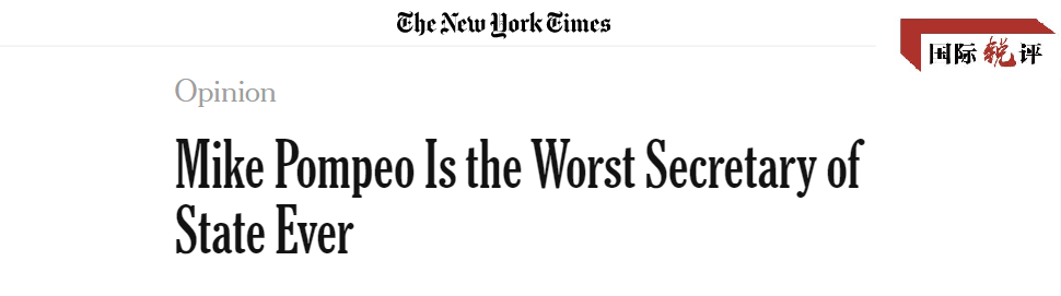 “他是美国历史上最差的国务卿,没有取得任何外交成就。”《纽约时报》网站近日发布的一篇文章这样痛斥现任国务卿蓬佩奥。这与《华盛顿邮报》3月底指称蓬佩奥是“史上最差国务卿之一”的评价相比,显然更清醒了,表明随着美国国内疫情日趋严峻,美国社会越来越认识到蓬佩奥对美国民众生命与国家利益的巨大危害。