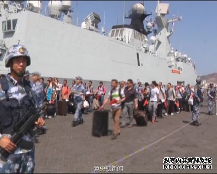 解说:这次首批撤离的中国同胞有122名,分别是我驻也门总领事馆工作人员,中资企业员工和中国援也医疗队人员,其中包括七名妇女和一名儿童,另外将随临沂舰撤离的还有来自埃及和罗马尼亚的两名外籍人士。