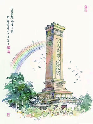 美术名家张安朴为《革命者》一书绘制了多幅插画,致敬所有为革命事业作出贡献的英雄。 图为以“人民英雄纪念碑”为素材的插画。