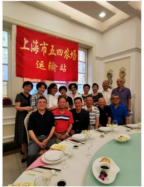 上海五四农埸运输站2020年7月15日在原副书记顾慧芬亲自带领下,运输站的前三任调度及驾驶员、汽修各工种、汽车零配件仓管、后勤保障和装卸等人员,假座梅龙镇酒家因疫情而延后迟来的再一次的相聚。