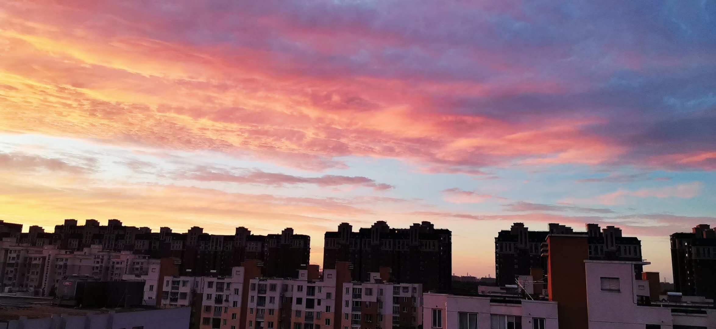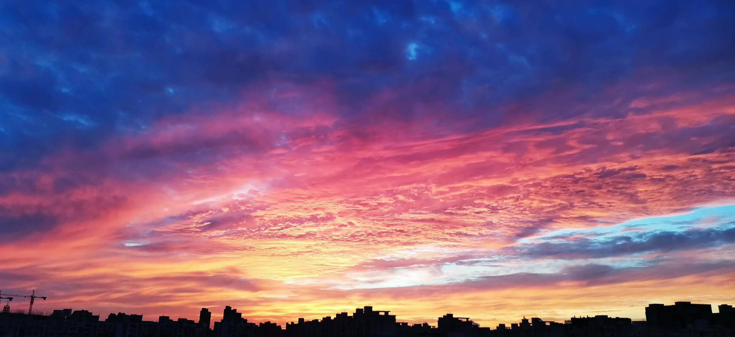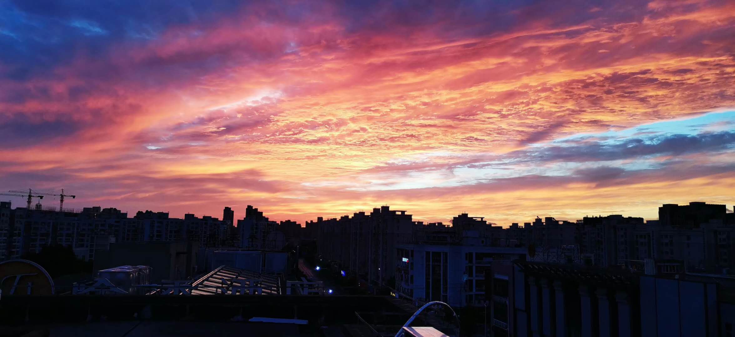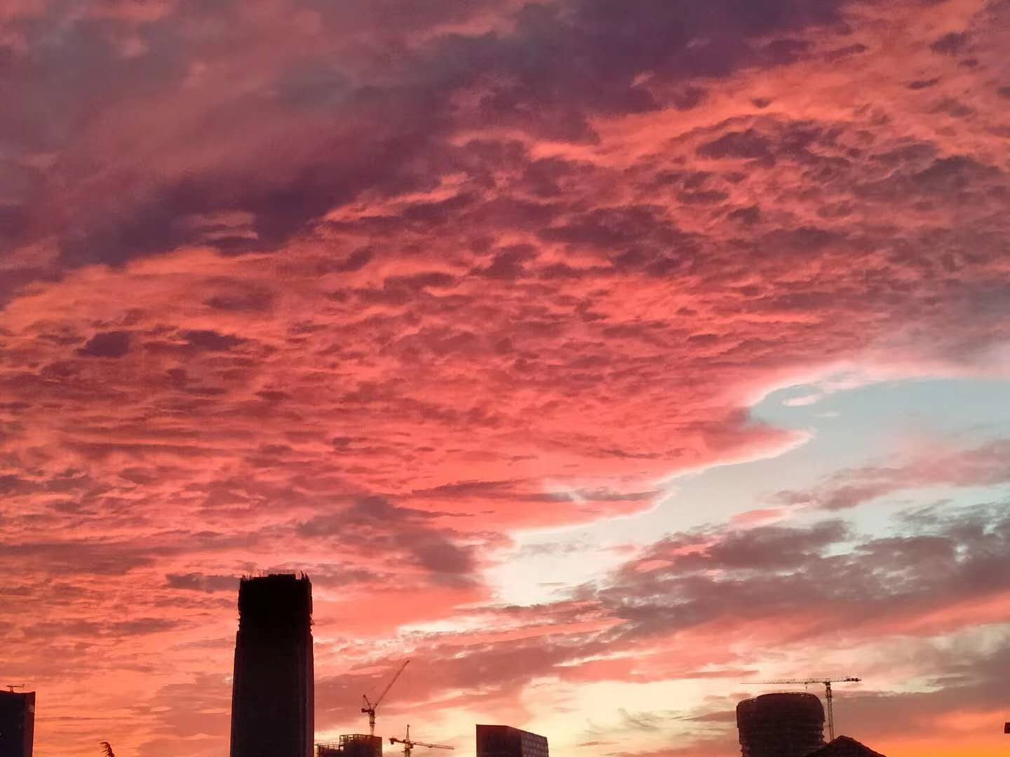 今天早上的朝霞特别漂亮,铺满了蓝天,令人忍不住要拿起手机摄下这美丽的一幕。