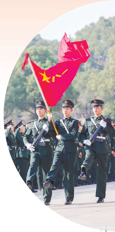 2019年12月13日,第72集团军某新兵旅举行新兵授衔暨入伍宣誓仪式。千余名新兵整齐列队,迎军旗,向军旗敬礼。刘自华摄(影像中国)