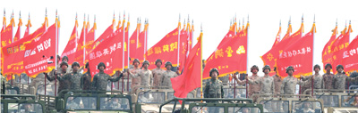 2019年10月1日,庆祝中华人民共和国成立70周年大会在北京天安门广场隆重举行。图为行进中的战旗方队。新华社记者 郭绪雷摄