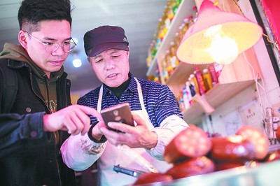 浙江杭州62岁的方爷爷把开了23年的老店搬到了网上,并制作漫画教老人如何点外卖。许康平摄/光明图片