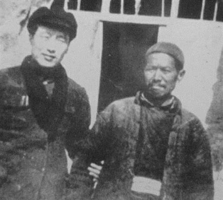 1956年,贺敬之重回延安与延安桥儿沟支书赵步喜(右)合影