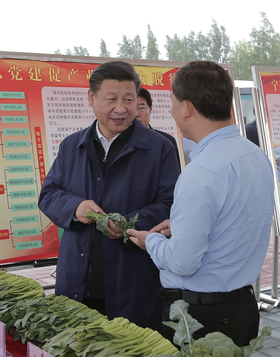 2016年7月18日,习近平总书记在宁夏回族自治区固原市原州区彭堡镇姚磨村了解冷凉蔬菜种植销售情况。