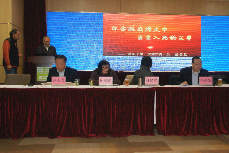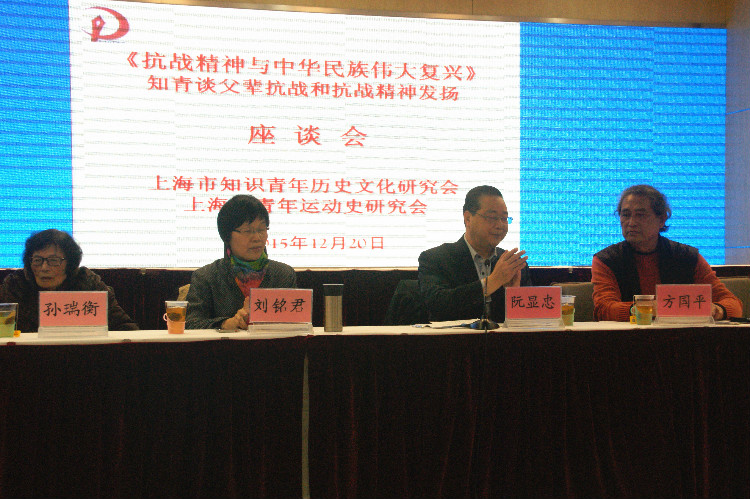 2015年12月20日下午一点半,上海市知识青年历史文化研究会与上海市青年运动史研究会,假座上海市青年干部学院一号楼会议大厅,共同举办了《抗战精神与中华民族伟大复兴——知青谈父辈抗战和抗战精神发扬座谈会》。此活动系上海市社会科学联合会2015年学术活动月的重要项目之一。会议由阮显忠会长亲自主持,副会长方国平介绍筹备过程,张志尧、李庆梅、庄崚、盛昌旦、葛天琳、李小兵、郇江等七名各地知青代表作了主题演讲,特邀嘉宾代表孙瑞衡和知青代表陆亚平等也在会上做了大会发言。应邀出席会议的嘉宾还有著名抗战老兵后人张自忠的孙子张纪祖、张灵甫的儿子张道宇等。整场活动组织严谨,内容紧凑,会议到五点还有不少与会者要求发言,可主持人不得已宣布结束,以致大家没能听到新四军老干部子女万曼影老师的父辈精彩抗战故事,只能留待网上发表。会议发放的材料中还有来自外地和国外的知青,作为抗战老兵后人,特地写来的回忆文章。