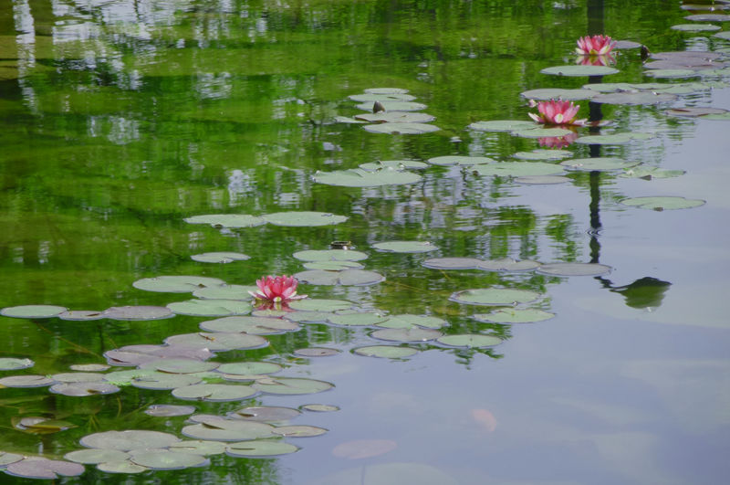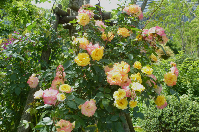 渡河桥赏看游鱼,簇簇俊气的丁香花有白有黄还有紫,秀色可餐。