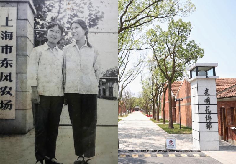让他惊喜的是,记忆里的老建筑没有随着花博会的建设被拆除,而是变得漂亮时尚。原来,为纪念农场岁月和围垦精神,光明食品集团开发时,特意遵循修旧如旧的原则,大礼堂、办公楼等均保留原始风貌,建筑内部结构也基本保留,再通过巧妙设计,变成稻香书店、文化餐厅、多功能厅等。它们还有了一个新名字——东风会客厅,记录这一区域与东风农场的渊源。