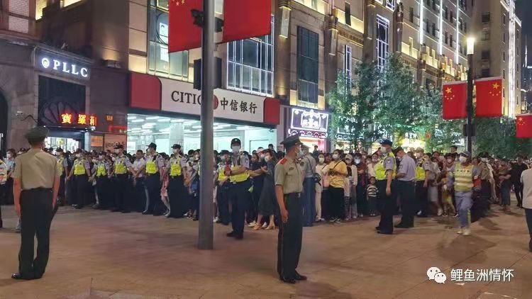 我晚上九点钟离开平台下来后,发现南京东路口武警已经控制游人上外滩平台了,外滩的景观灯也一度关闭了,原来我准备在南京东路站乘地铁,但此时已经不能进站,可能是已经停止这个站上下游客了,我只好到人民广场乘坐地铁了。