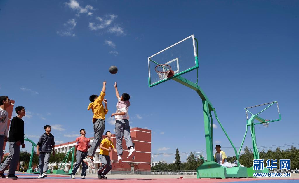 宁夏吴忠市同心县豫海初级中学学生在校园里打篮球(2020年9月18日摄)。新华社记者 王鹏 摄