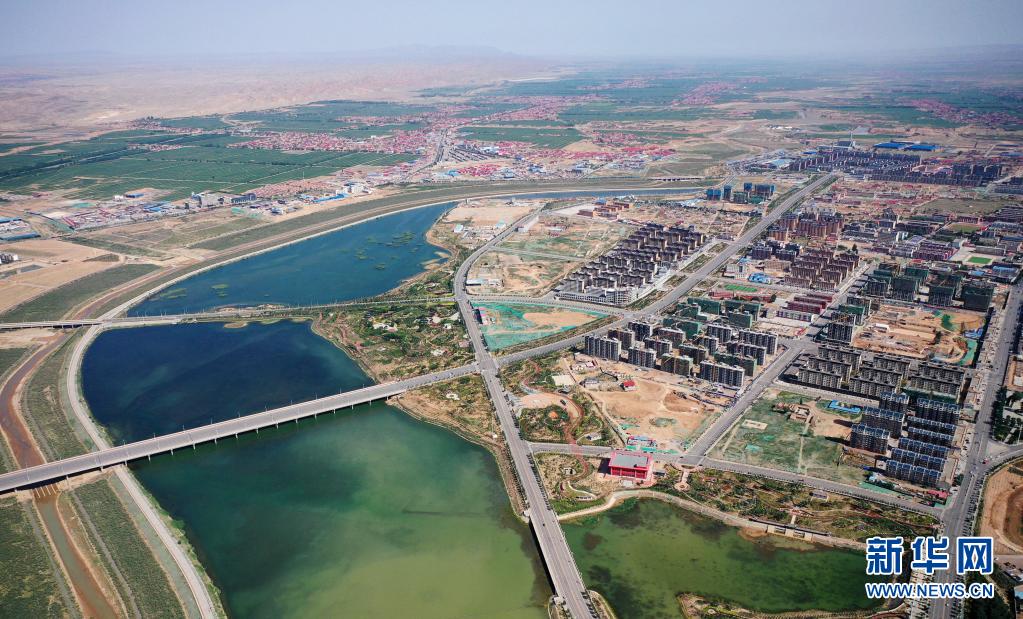 宁夏吴忠市同心县,清水河水系环绕下的县城(无人机照片,6月22日摄)。新华社记者 王鹏 摄
