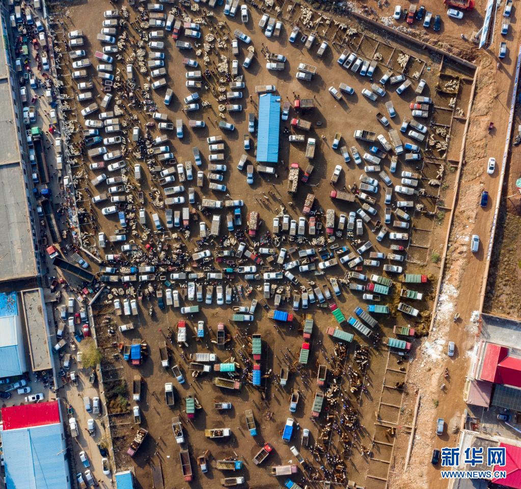 这是2019年11月7日拍摄的宁夏吴忠市同心县牛羊交易市场(无人机照片)。新华社记者 杨植森 摄