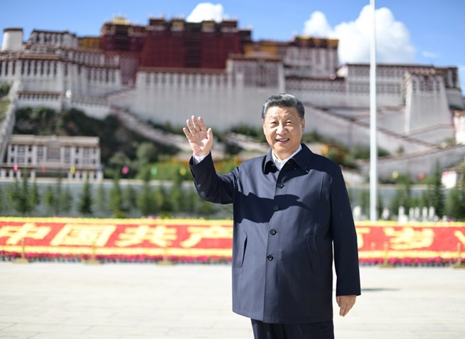 作为中共中央总书记、国家主席、中央军委主席到西藏庆祝西藏和平解放,这在党和国家历史上是第一次,习近平总书记强调:“就是要表达党中央对西藏工作的支持,对西藏各族干部群众的关怀。”