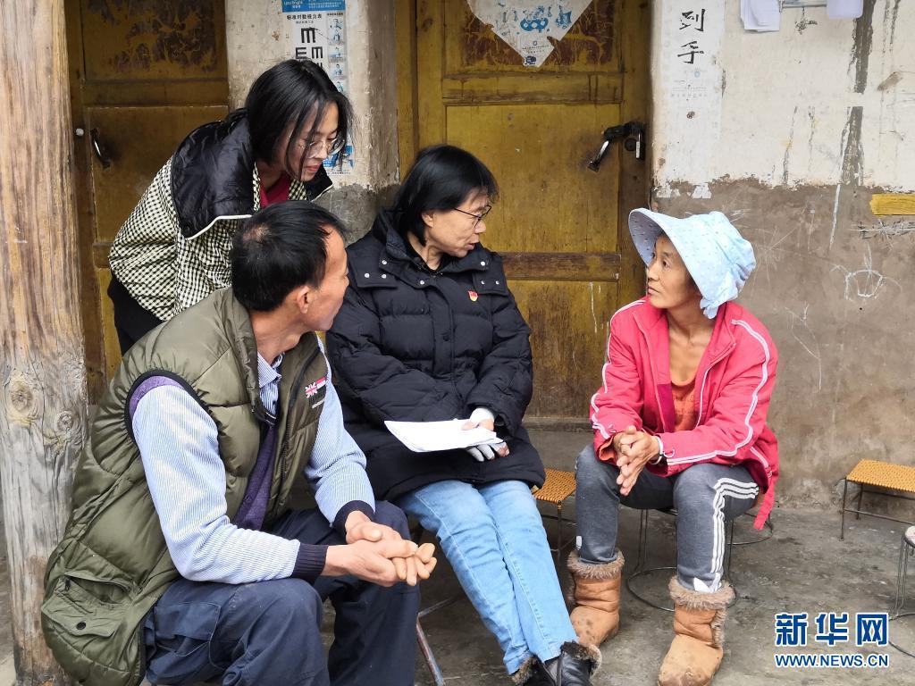 2月9日,张桂梅(右二)在家访时与学生家长交谈。新华社发(王秀丽 摄)