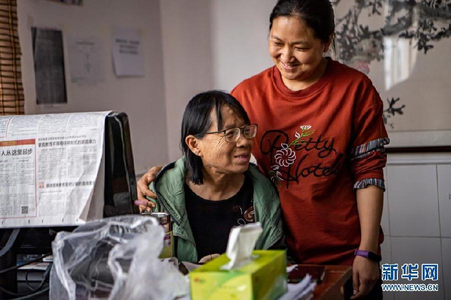 3月25日,在华坪儿童福利院长大的雷秋凤(右)来探望张桂梅。新华社记者 江文耀 摄