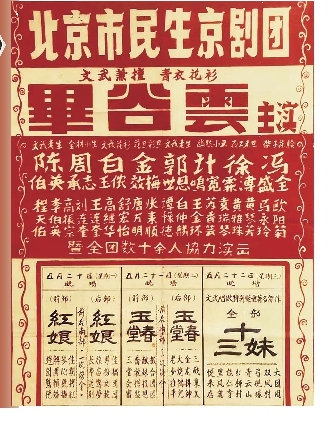 上世纪中期毕谷云在北京主持民间剧团的演出广告