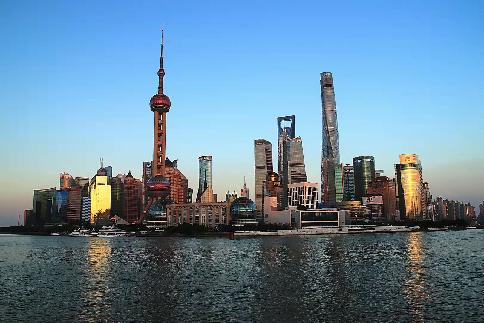 支好脚架,先为对岸的陆家嘴立照。此时,陆家嘴的建筑群正沐浴着夕阳的余晖。