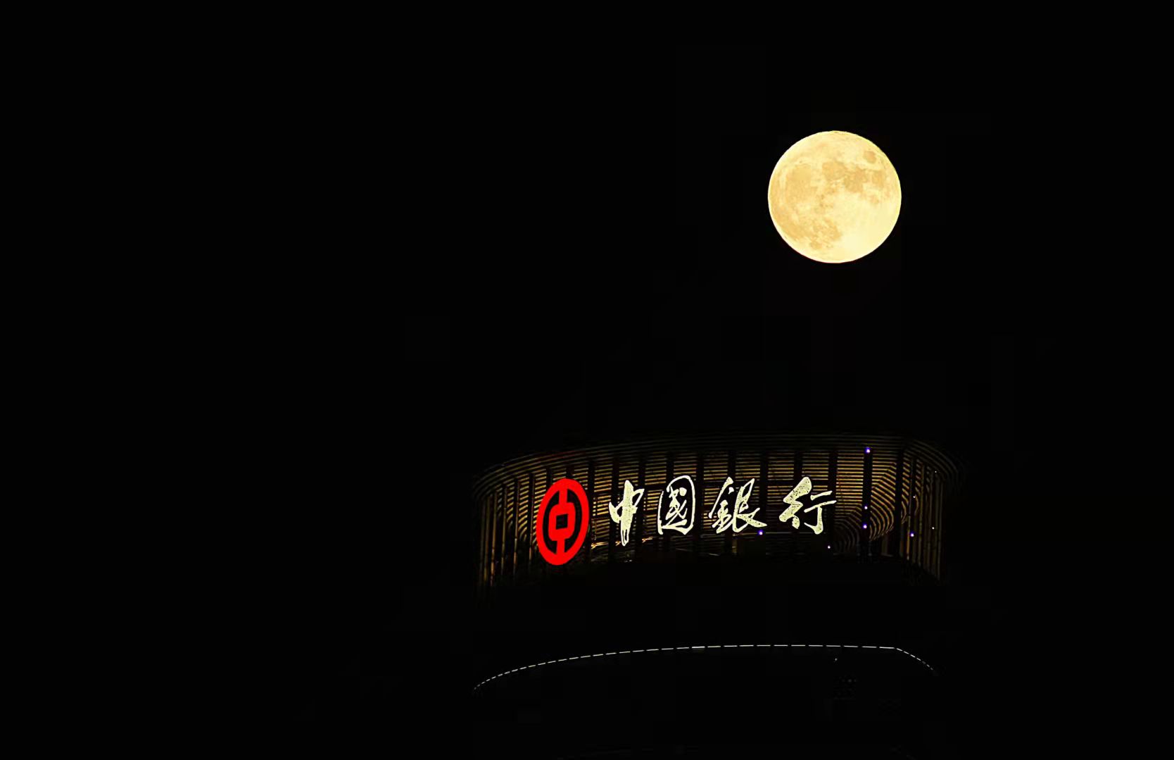 为了能留下中秋之月最好的形象,一切的拍摄参数就以月亮为准,让这一玉盘清晰地悬挂在中国银行的上空。在这样的环境中,这轮金黄的明月恰如中国银行发行的一枚崭新的金币——既然鱼和熊掌不可兼得,当然是要保熊掌的——它值钱呀!