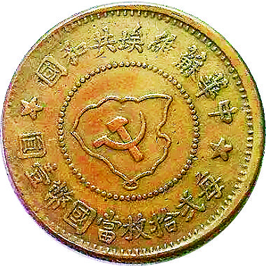 这次沈老师给我看了几枚硬币,其中有一个圆形铜币颜色灰暗,但中间的镰刀铁锤图案依然清晰。上方有“中华苏维埃共和国”几个字,下方有“每贰拾枚当国币壹圆”字样。他告诉我,红军长征中有一支特殊队伍。它就是由毛泽民任行长的“中华苏维埃共和国国家银行”。长征出发时,这个“扁担上的银行”有14名干部,他们牵着马、挑着担,携带着印钞机、重要文件,以及苏区通用的钱币。可是在敌军的围追堵截下,许多物品被就地掩埋或焚毁,其中6名工作人员长眠于长征途中。目前看到的这些钱币可能是当年从马背上掉落被人捡到的,虽锈迹斑斑却弥足珍贵。