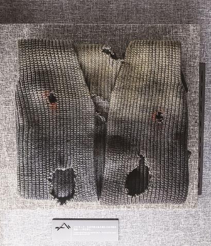 在上海市龙华烈士陵园的纪念馆中,同样陈列着一件绒线背心,而它却弹痕累累,七个枪弹孔穿透前胸和后背,弹孔边缘都留有锈迹斑斑。