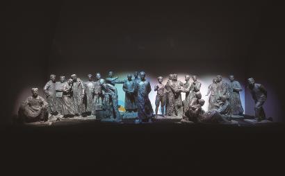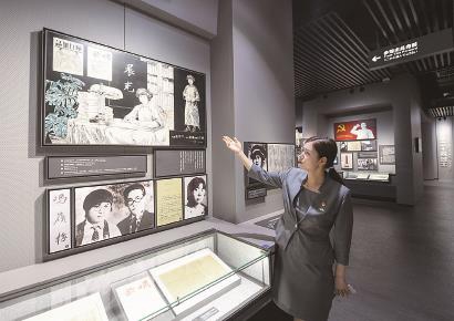 站在冯铿的展板前,和那个在晨光中端坐在书桌前的少女对视,稚嫩的脸孔,坚毅的嘴角,略带英气的眉眼,柔柔目光中透着一丝早慧的、似能洞穿世事的犀利。经过平磨螺钿工艺的特殊处理,她的脸庞闪耀着贝母的光泽,荧光点点、熠熠生辉。书桌上堆满了书籍,手边翻开的书还未读完……原本她也可以继续做一个普通的女性,但在那个饱受欺压的时代,已被唤醒的信仰又怎么可能归于平静,眼看着劳工被欺凌、同胞备受磨难、让普通女性成长蜕变为革命战士。纵然纤纤弱质,也要以笔为刀枪,发出激越的呼号,唤醒广袤大地上无数沉睡的心灵。时光流转、岁月变迁,唯爱与信仰的火光生生不息。