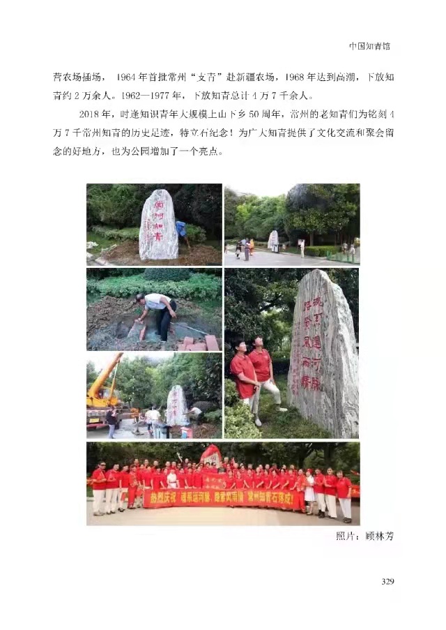 为纪念知识青年上山下乡50周年,常州市地方文化研究会知青协会组织社会各界知青爱心捐筑“常州知青石”,捐款人计478人,捐款额有10元、50元、100元,最多的个人捐款万元。