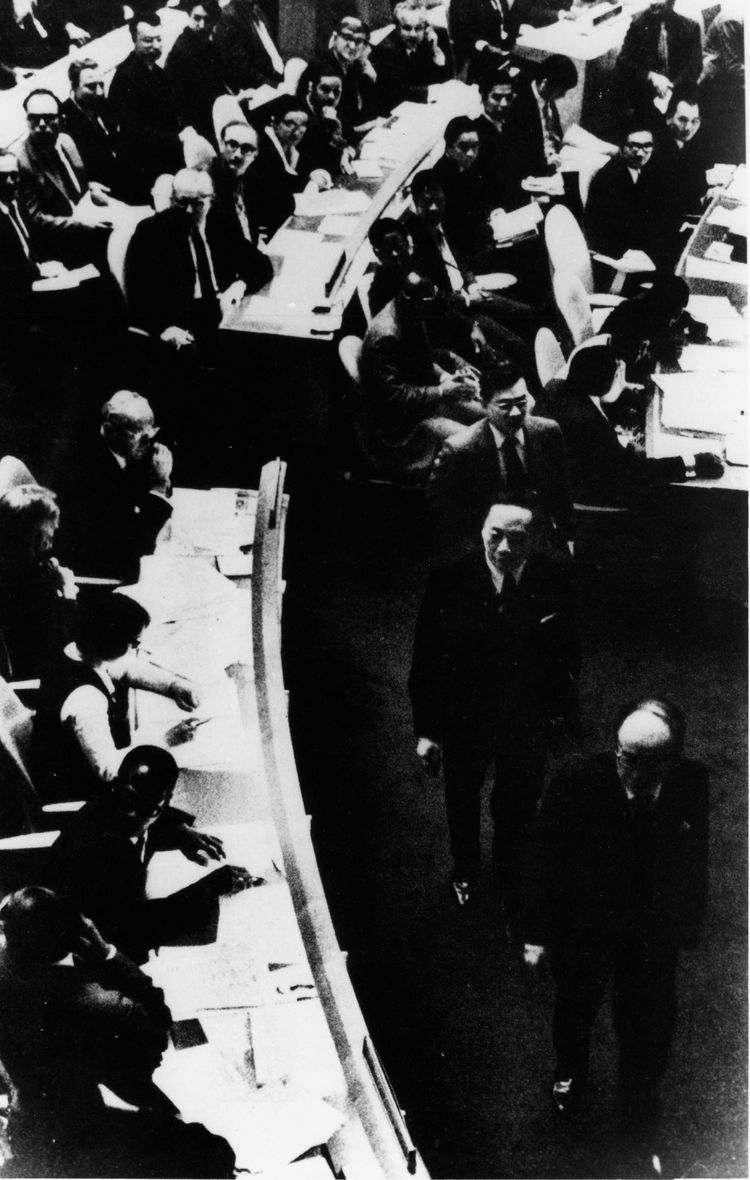 大会主席马利克将“重要问题案”进行唱名表决,结果是59票反对、55票赞成、15票弃权被否决。外电报道说,“当电子统计牌上出现表决结果,表明美国的建议被击败时,大厅里立刻沸腾起来”,“挤得满满的会议厅中发出了长时间的掌声”。而美、日代表则“沉默不语”,“表情坚若石头”。“联合国代表们今晚击败了美国为保住台湾在联合国的席位而做出的努力,从而为北京进入联合国铺平了道路。他们在走廊里高声欢笑、歌唱、欢呼、拍桌子。” (路透社,合众社)