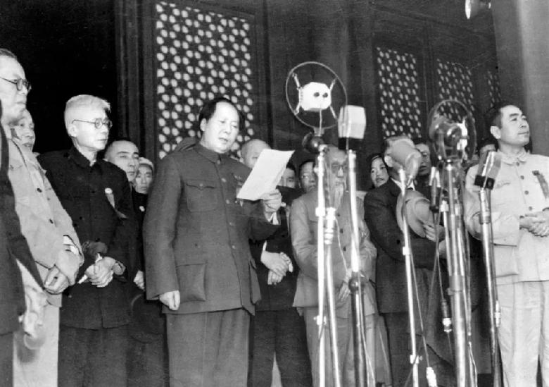 1949年10月1日,毛泽东主席在北京向全世界庄严宣告中华人民共和国暨中央人民政府正式成立。陈正青摄 中国照片档案馆征集