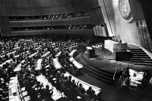 这是1971年10月25日第26届联合国大会召开时的资料照片。新华社发