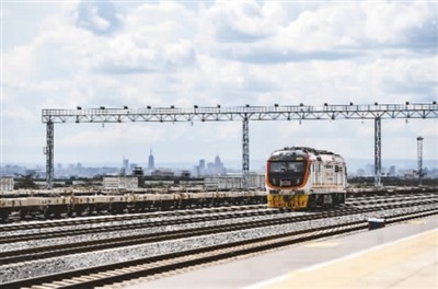 中国交建承建运营的蒙内铁路是肯尼亚在近100年间建设的第一条铁路。该铁路在建设过程中为当地创造了数以万计的就业岗位。图为机车在蒙内铁路铁轨上运行。 新华社记者 李 琰摄