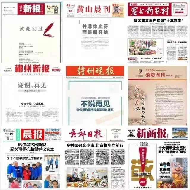 三年来,一批一批报纸宣布停刊,《法制晚报》《北京晨报》《北京文摘》《华商晨报》《新商报》《京郊日报》《黑龙江晨报》《人民公安报·消防周刊》《黄山日报·黄山晨刊》《赣州晚报》……