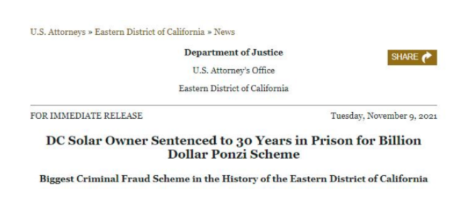 美国联邦检控官称,Carpoff被判处30年监禁的原因是,其策划了一场超级“庞氏骗局”,涉及35个投资基金,堪称加州东部地区历史上最大的刑事欺诈案件。