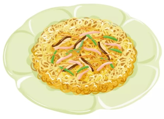 锅里加油,放入面条,在锅底摊开,中火煎炸,直到两面金黄,出锅装盘。