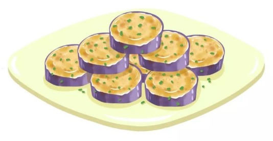 变化:可以改用美国超市里的大圆茄子,刨去皮切成片。