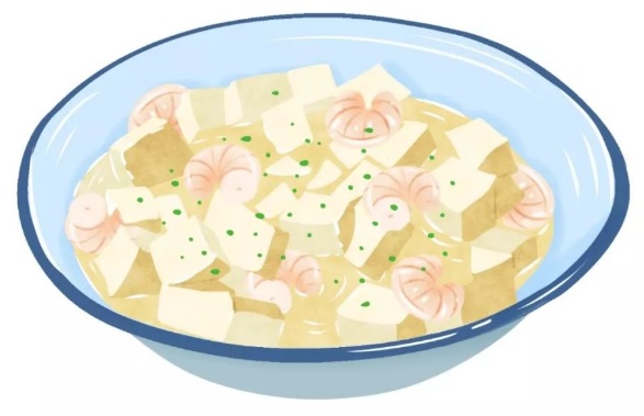 变化:美国没有河虾仁,可以用去壳的海虾切碎代替;加入切碎的鲜贝、鲜鱿鱼、草菇、韭黄等食材,可以做成海鲜豆腐;加入蟹粉,可以做成蟹粉豆腐。