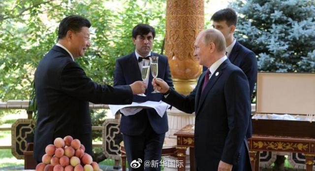 在结束当天工作之后,普京和习主席一起就着香肠喝着伏特加庆祝生日。普京说:“我还没有和哪位外国同事建立过这种关系、或做出类似的安排,但和习主席做到了。”